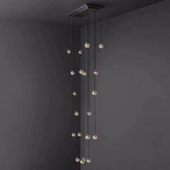 Each crystal glass ball is carved by skilled artisans, and the ceiling shade and fittings are made of solid brass. The glass shade of this chandelier is sculpted with intricate grooves like a pearl crafted by nature, adding a touch of lustre and sea to this wall lamp.