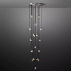 Each crystal glass ball is carved by skilled artisans, and the ceiling shade and fittings are made of solid brass. The glass shade of this chandelier is sculpted with intricate grooves like a pearl crafted by nature, adding a touch of lustre and sea to this wall lamp.