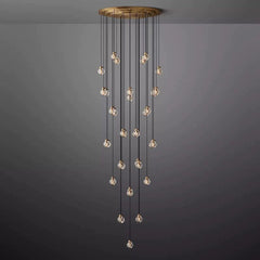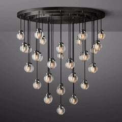 Each crystal glass ball is carved by skilled artisans, and the ceiling shade and fittings are made of solid brass. The glass shade of this chandelier is sculpted with intricate grooves like a pearl crafted by nature, adding a touch of lustre and sea to this wall lamp.