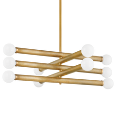 Minimal, yet bold, Pienza elevates industrial design concepts with a touch of old Hollywood glamor. Each Vintage Brass tube supports two glass orbs at either end, creating a sense of perfect equilibrium. Blurring the line between art and design, Pienza comes as a sconce in two sizes or as a chandelier of stacked tubes.