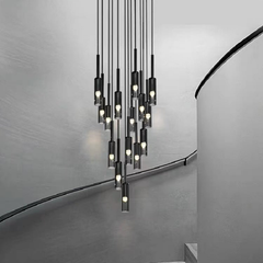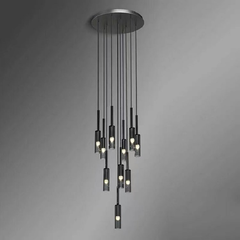 Made of high-quality metal and glass, this pendant lamp features a uniquely coloured glass shade. The staggered light source modeling design endows the space with artistic tension. |