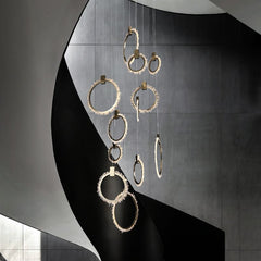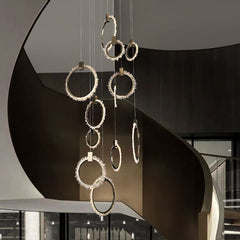 Primary Crystal Cluster 12 Rings Staircase Chandelier