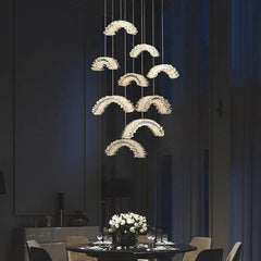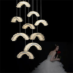 Rainbow Modern Rock Crystal Staircase Chandelier is a modern and beautiful design. This chandelier is adorned with dazzling clear crystals that will give your home a touch of luxury. Perfect for a dining room, living room or bedroom.