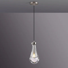 Much like the rhythm of a rainstorm itself. Suspended from slim black cords, drops of blown glass encase the bulbs – creating the illusion of underwater illumination – and cast luminous ripples that wash across ceilings and walls.