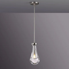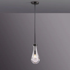 Much like the rhythm of a rainstorm itself. Suspended from slim black cords, drops of blown glass encase the bulbs – creating the illusion of underwater illumination – and cast luminous ripples that wash across ceilings and walls.