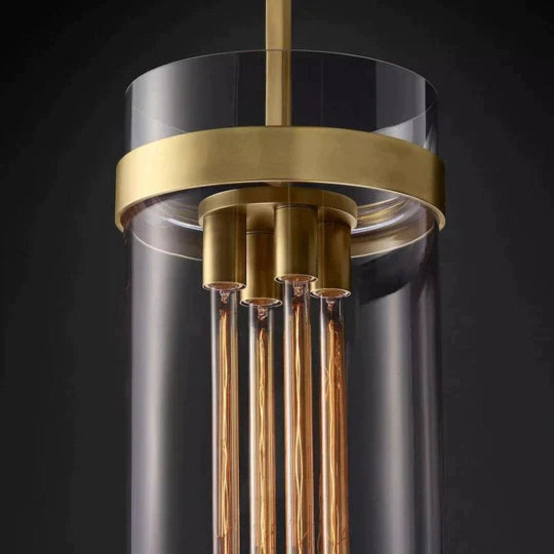 This pendant light blends top-notch copper elements with glass for a luxurious touch. Handcrafted by experienced artisans, these shades boast clear glass, casting a warm and bright light. With sturdy brass fittings, they offer both elegance and practicality, perfect for enhancing any space.