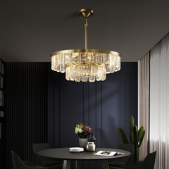The design of this chandelier is inspired by the Danish crown, with a unique layered design and high-brightness LED light source, showing a luxurious and atmospheric texture.This modern crystal chandelier is perfect for living rooms and entryways or any space where you want to add a WOW factor. |