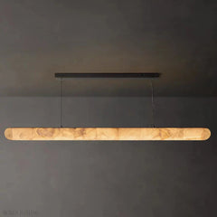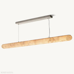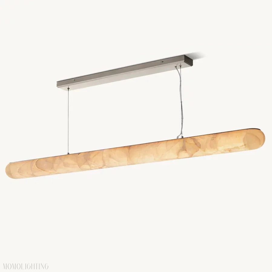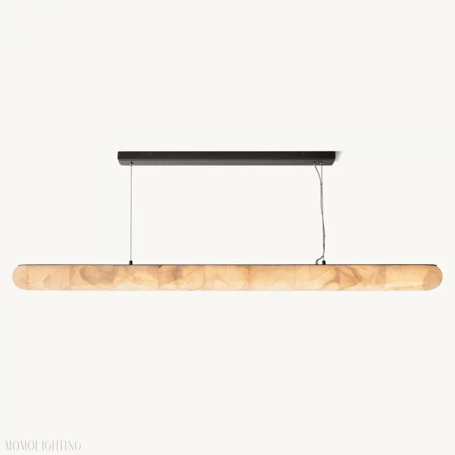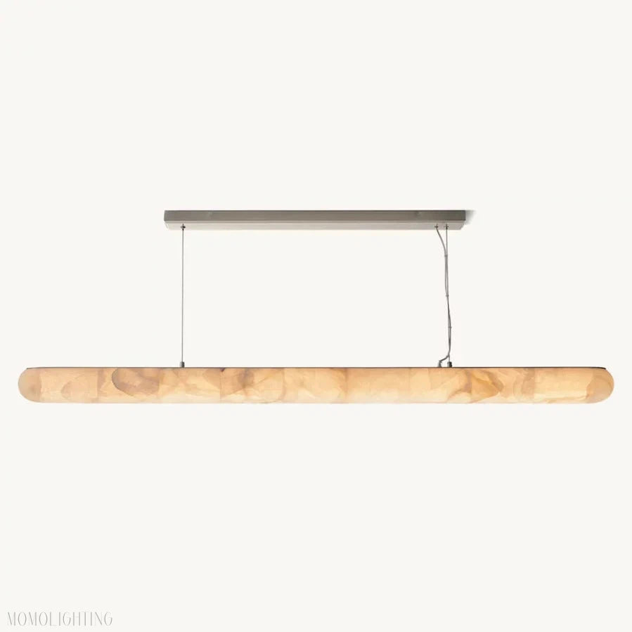 Our Rivage chandelier is minimalist in form and striking in effect, highlighting the beauty of calcite, a translucent stone that emits a warm, natural light. Suspended from slender steel cables, the chandelier’s halo of polished stone is skillfully pieced together to create a smooth, continuous surface, while subtle internal illumination highlights organic colors and textures. Each fixture is a unique statement.