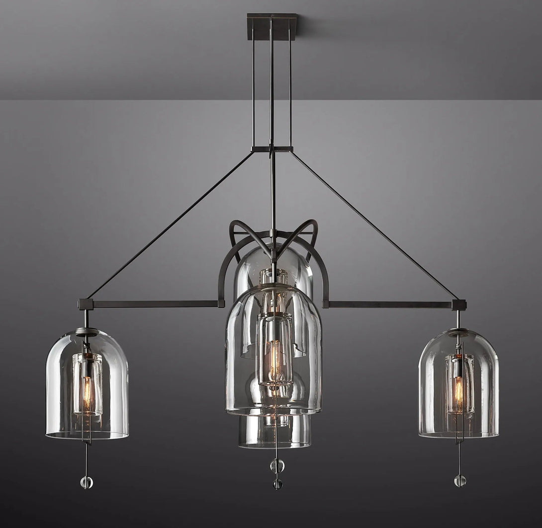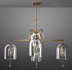 Ancient scales and other measuring instruments inspire this series in which blown glass clocks and spheres are suspended from metal frames in a state of perfect balance. Blurring the line between illumination and sculpture, each piece is a radiant focal point and a powerful symbol of balance.
