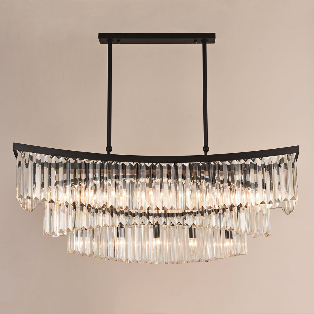 Roundel Rectangular Odeon Fringe Crystal Chandelier
