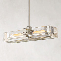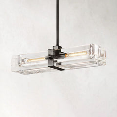 In our Savile collection, we have created a masterful study of solid and void. A monumental block of crystal is carved with a concave channel to hold an Edison bulb and set in a frame of solid brass. The crystal reveals its solidity when illuminated, refracting and reflecting the bulb within, but takes on a weightless transparency when dark.