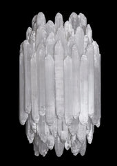 Named after the Greek goddess of the moon, selenite is known for its soft pearlescent glow similar to moonlight. It is the crystalline version of the mineral Gypsum, and is revered by many for its spiritual and protective properties with some believing it unlocks the chakra of divine wisdom. The oldest Selenite crystal ever discovered was 500,000 years old in Chihuahua, Mexico. Suspended like glistening stalactites, the crystals in our Selenite sconce are painstakingly affixed to the frame one by one.
