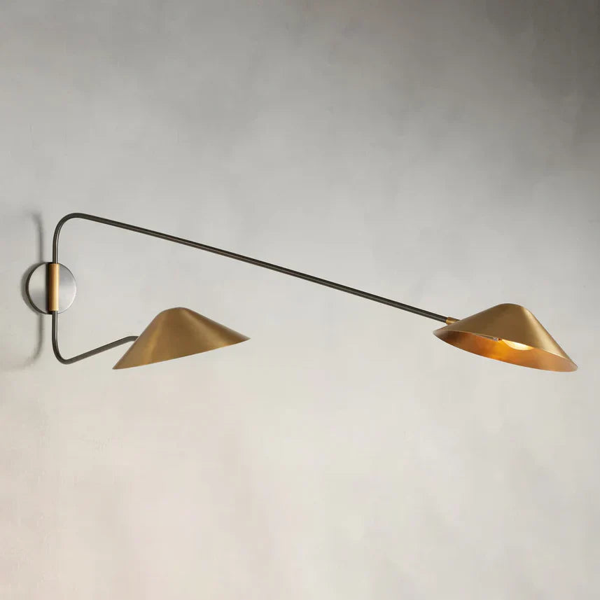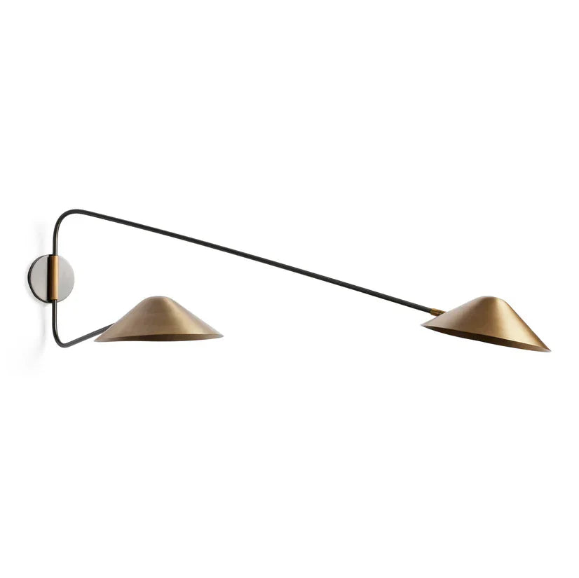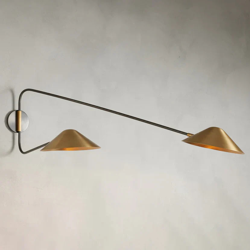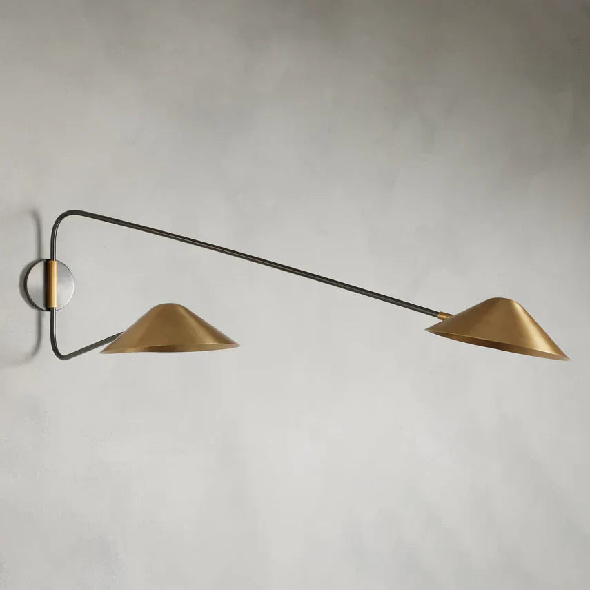 - Top light arm measures 54” from the backplate. Bottom light arm measures 28.5” from the backplate.