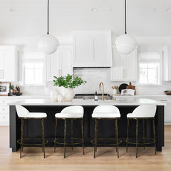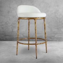 Our stool from Alexander merges the rustic sensibility of a hand-forged metal base with tailored upholstery. Employing an ancient fabrication process, artisans hand hammer the metal bars to reveal an alive, imperfect and organic texture, a counterpoint to the frame's slender, tapered silhouette.