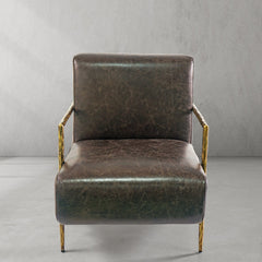 Our chair from the rustic sensibility of a hand-forged metal base with supple leather. Employing an ancient fabrication process, artisans hand hammer the metal bars to reveal an alive, imperfect and organic texture, a counterpoint to the frame's slender, tapered silhouette.
