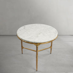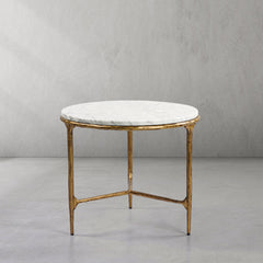 Our hand forged metal with marble collection. Using an age-old production process, artisans hand-hammer metal strips to reveal vibrant, imperfect, organic textures. The hammered, tapered silhouette provides a rich contrast to the smooth, honed stone.