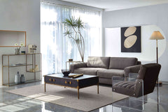 This coffee table has a simple and powerful shape with a dark wooden top, which undoubtedly attracts a lot of attention due to its unique design. With its vintage copper-iron frame and noble leather border, it brings a lot of class to the living room.